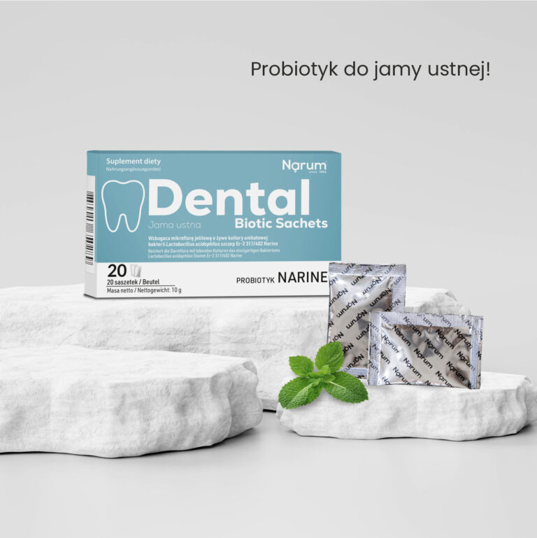 Suplement diety Narum Dental Biotic Sachets w saszetkach ma na celu uzupełnienie mikroflory jelitowej w bakterie Lactobacillus acidophilus szczep Er-2 317/402 Narine, metabolity bakterii Lactobacillus acidophilus szczep Er-2 317/402 Narine oraz metabolity Lactobacterium mazuni szczep Karine 2. Suplement rekomendowany jest również w trakcie i po antybiotykoterapii dla uzupełnienia mikrobioty jelitowej.